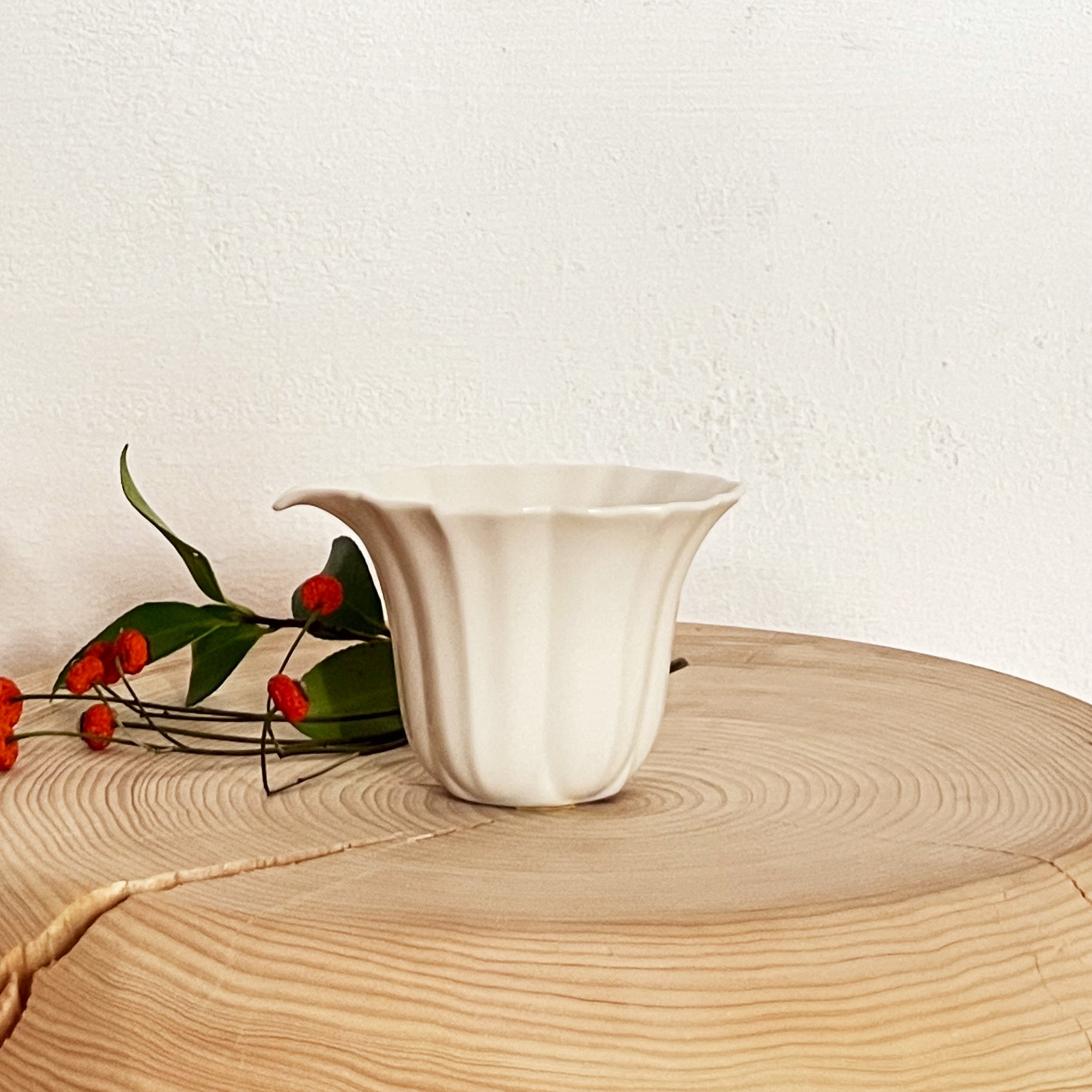 ◇ 白磁の静けさに咲く、稜線の美しい茶海
